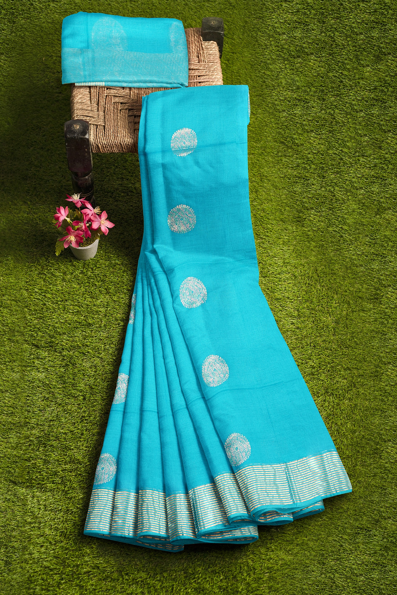 Crafted from Natural Fabric, this saree is breathable, gentle on the skin, and honest in its feel—no synthetic drama, no shortcuts. The cotton handloom weave keeps it light yet dignified, making it perfect for long days, festive evenings, or moments when comfort matters as much as grace.